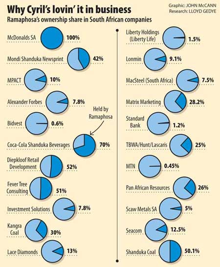 In the years between, his business empire has grown massively. His interests now include a big stake in the Lonmin platinum mines; he is implicated in the 2012 Marikana Massacre of striking miners near Rustenburg. As a result, he had to testify at the Farlam Commission in Centurion, Tshwane, which recently ended.